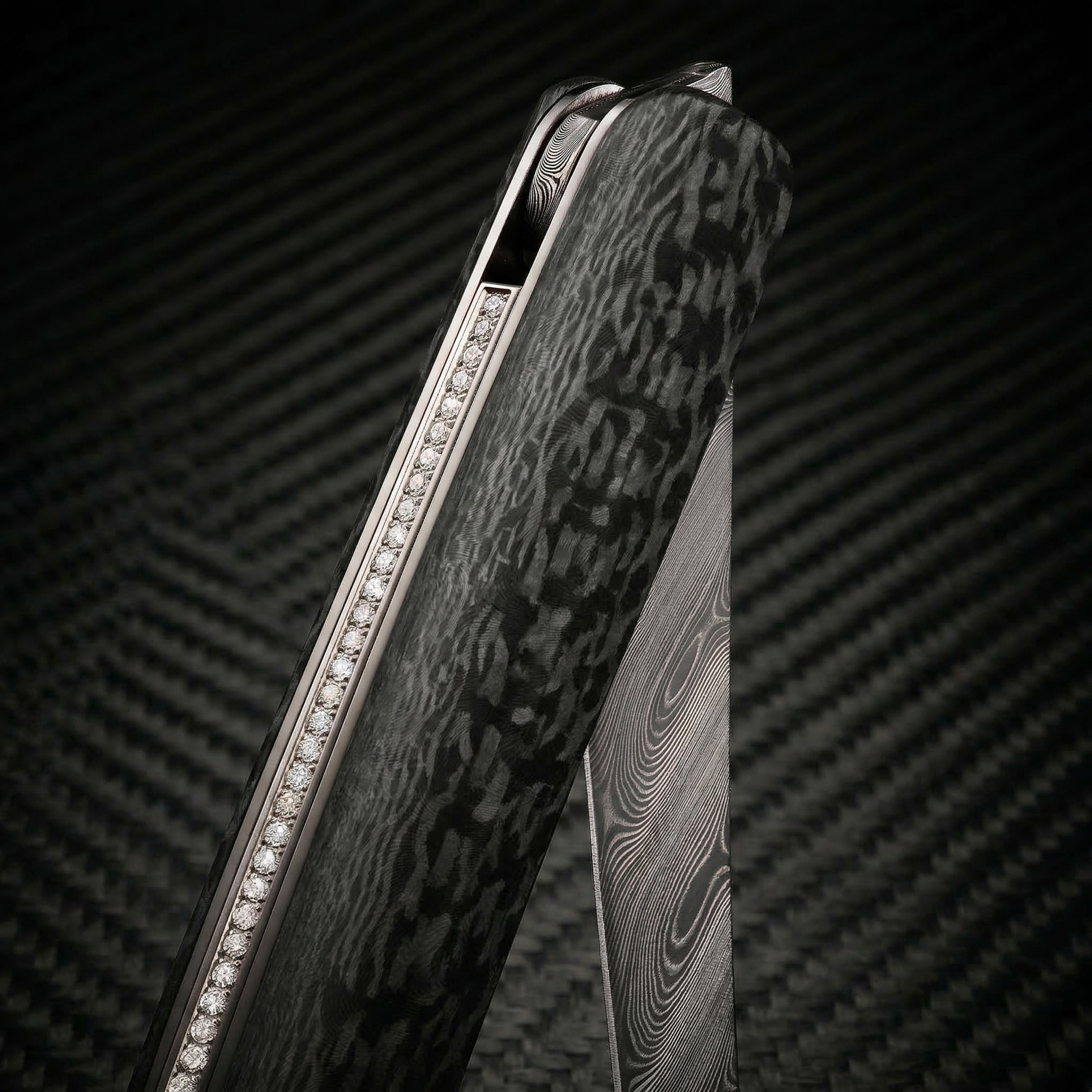 sknife Taschenmesser Damast Carbon Diamanten